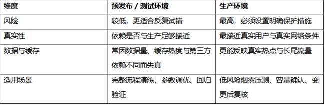 这是网站压力测试中最常见的问题。理想做法通常不是二选一,而是分阶段:先在预发布环境做完整演练,再在生产低峰做小流量验证。