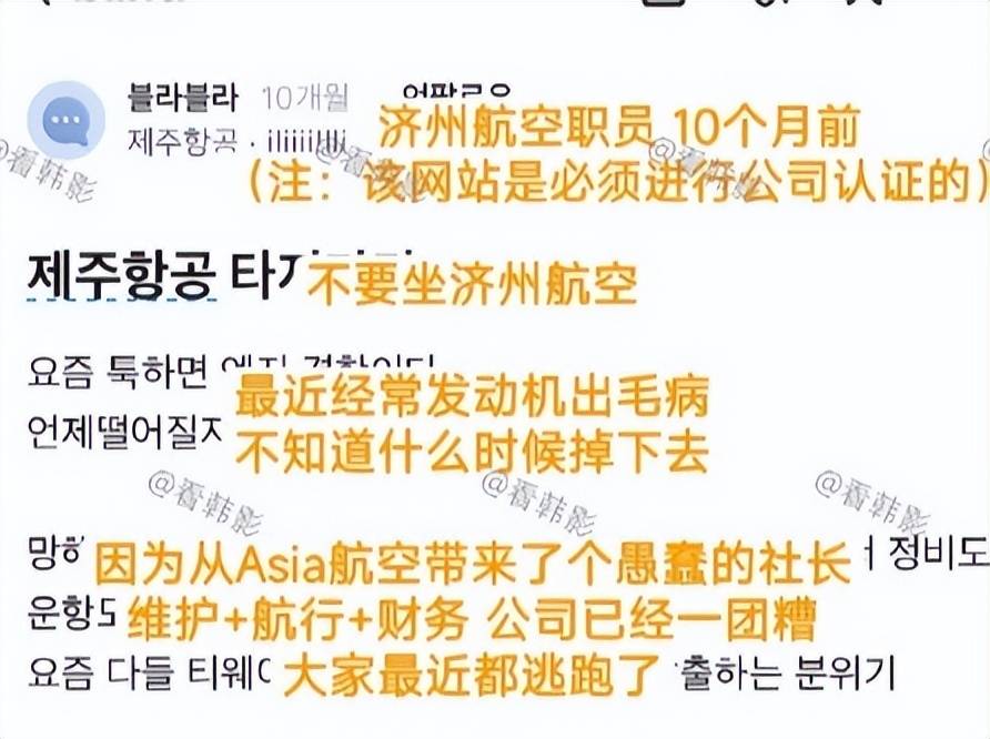 12·29空难后,韩国网友发现一年前,自称济州航空职员的帖子,提醒大家不要坐济州航空飞机,因为发动机经常在天空中故障,不知道什么时候就会掉下去。