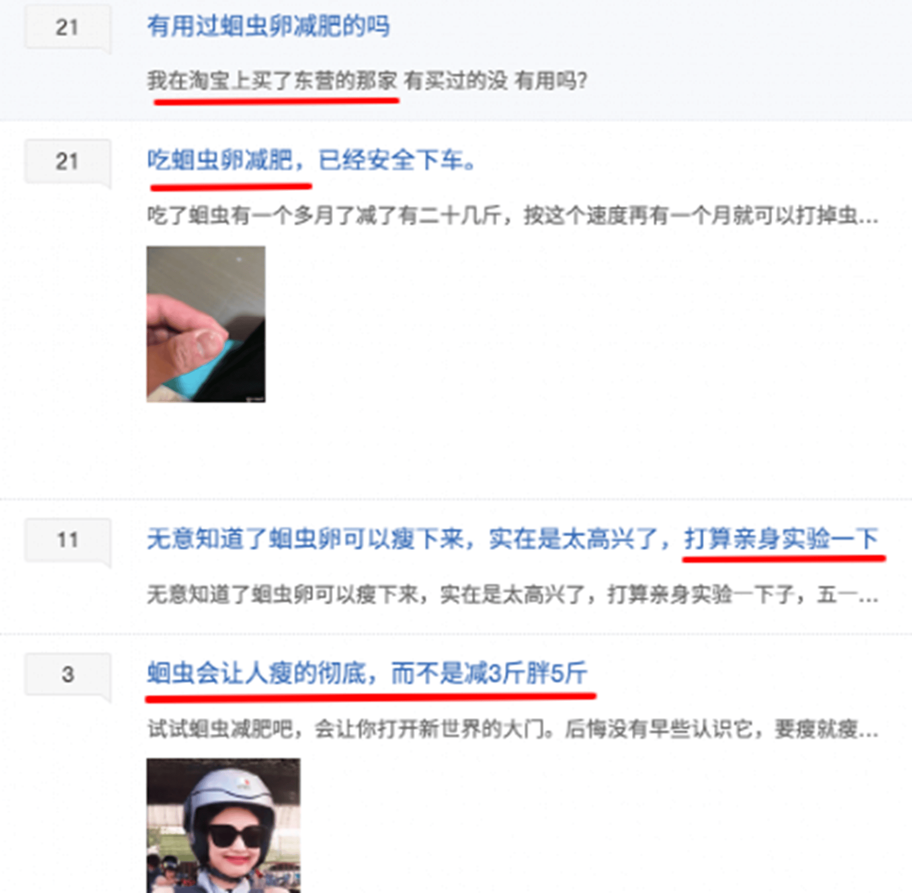 网上不仅有讨论如何吃蛔虫减肥,还交流购买蛔虫卵的经验。