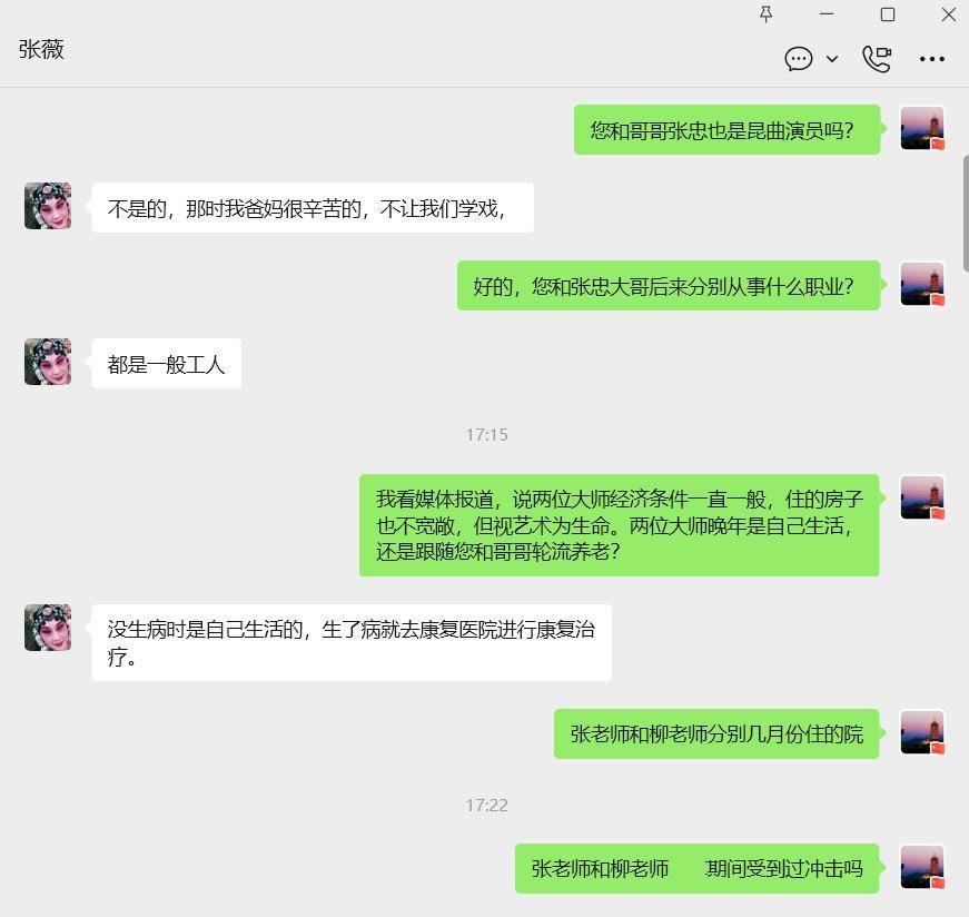 2026年3月12日,“细品名人”通过电话、微信,采访了张继霖、柳继雁老师的女儿张薇。随后,“细品名人”又采访了柳继雁老师的学生——著名昆曲教育名家沈小燕女士。